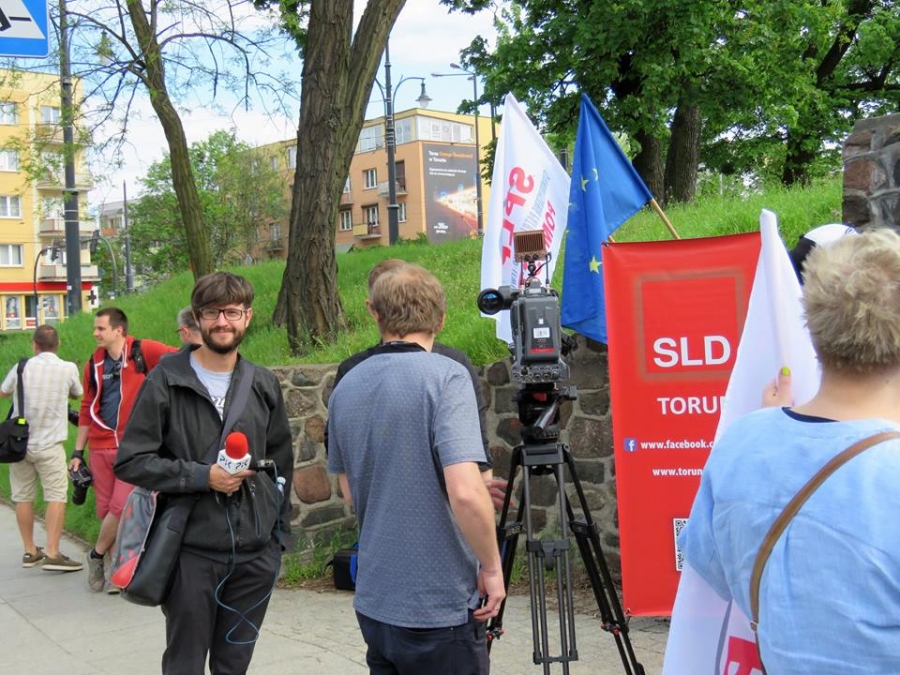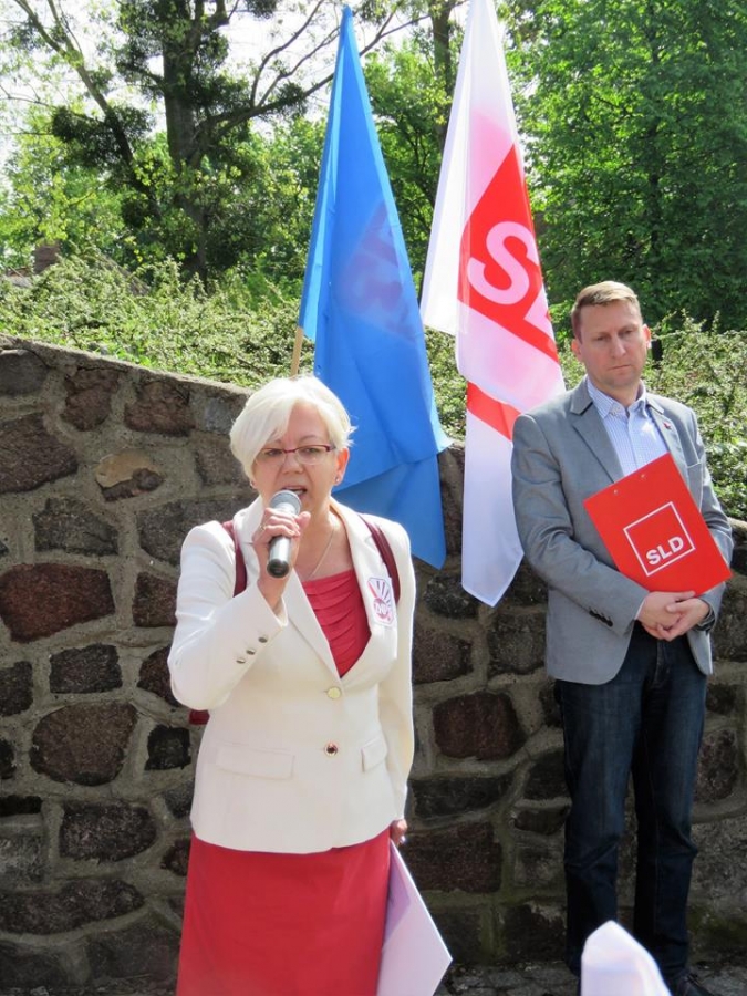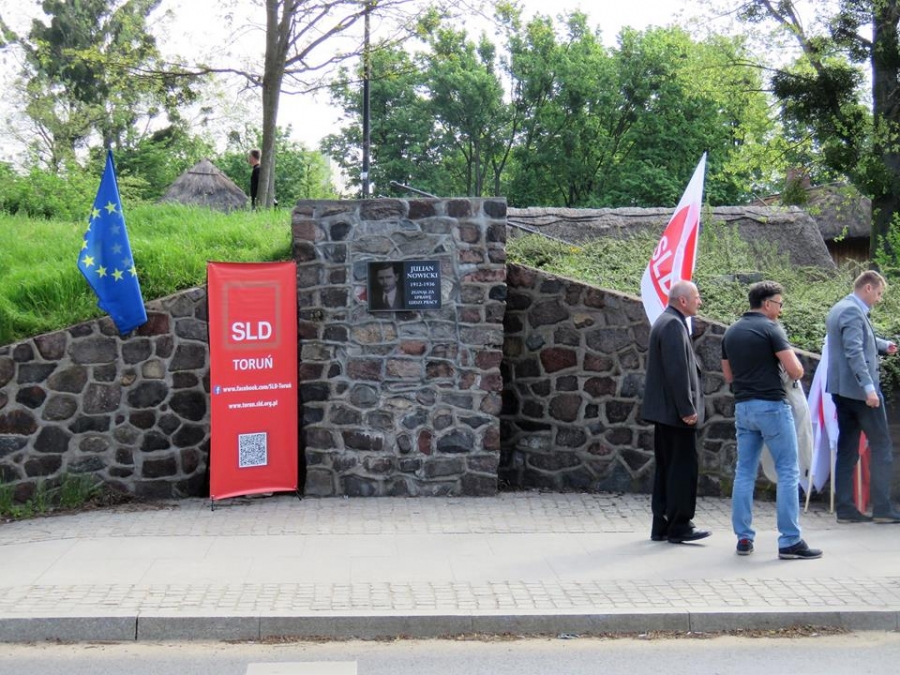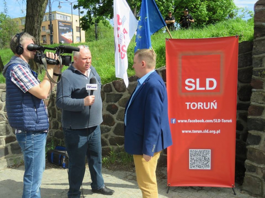 Tradycyjnie z okazji Święta Pracy w Toruniu odbył się dzisiaj okolicznościowy wiec. W miejscu gdzie do niedawna wisiała tablica upamiętniająca Juliana Nowickiego zebrani wysłuchali okolicznościowych przemówień. Podkreślano w nich głównie obecną sytuację, w której znaleźli się emerytowani funkcjonariusze służb mundurowych oraz nauczyciele po reformie oświaty. Poruszano także kwestie praw kobiet i godnego funkcjonowania osób niepełnosprawnych oraz ich rodzin. Na zakończenie podkreślono wartości, którymi kieruje się dzisiejsza lewica, a które to są zbieżne z tymi, będącymi fundamentem zjednoczonej Europy. Dziękujemy wszystkim za przybycie. Członkom i sympatykom SLD, przedstawicielom służb mundurowych i wojska, delegacji ZNP oraz środowisk broniących praw kobiet. Przede wszystkim jednak, dziękujemy przybyłym mieszkańcom Torunia, którzy mimo dzielących nas różnic przybyli by wspólnie domagać się poszanowania godności, praw pracowniczych i praw człowieka z prawami kobiet i osób niepełnosprawnych w szczególności. Dziękujemy, w imieniu organizatorów - szef SLD w Toruniu i powiecie toruńskom Marek Jopp. Zdjęcia - Dawid Podlewski.